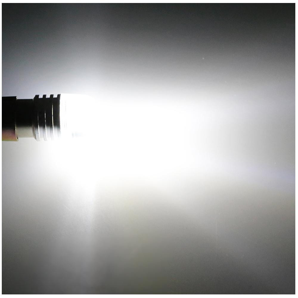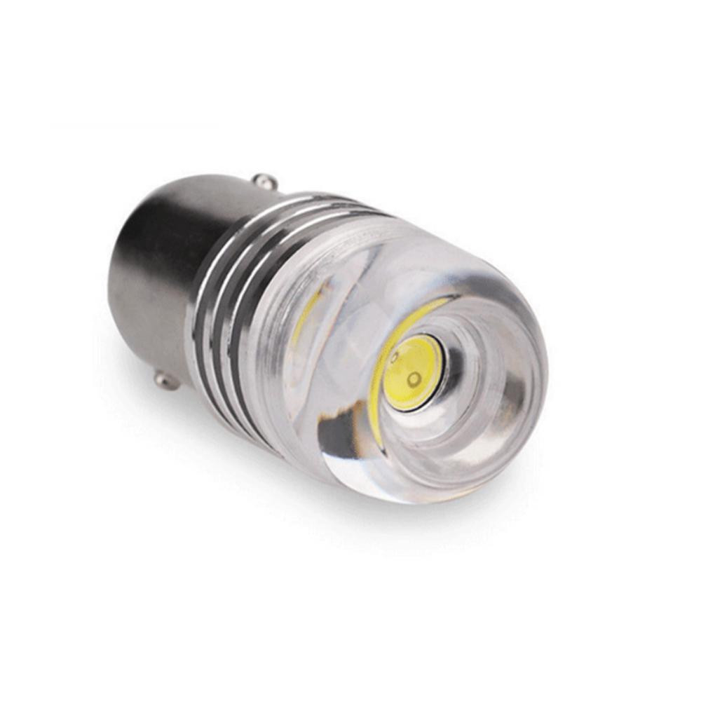 Ezen a BA15S izzón a led chippekre egy üveg lencse lett telepítve, így kiválóan szórja a fényt. A lencse kialakításának köszönhetően a ledek fényereje nagyobbnak hat, mivel jobban terti a fényét. Az izzó COB ledekkel van felszerelve.